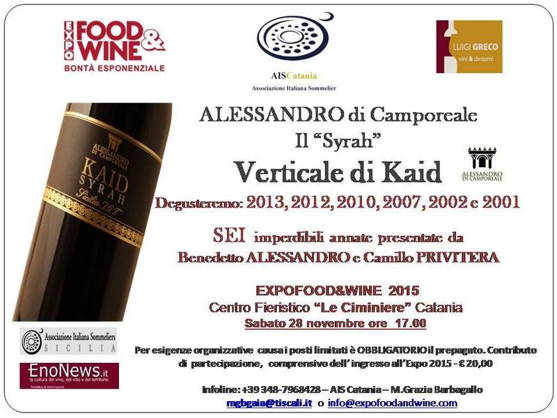 Inizia domani la 2^ edizione del Salone internazionale delle eccellenze enogastronomiche del Mediterraneo alle Ciminiere di Catania e anche quest’anno l’Associazione italiana sommelier Sicilia contribuisce a rendere il programma ancora più ricco grazie all’organizzazione di cinque grandi degustazioni guidate. Si comincia sabato 28 Novembre alle ore 17:00 con una meravigliosa verticale di Kaid, il pluripremiato Syrah tutto siciliano dell’azienda Alessandro di Camporeale. La degustazione, la cui organizzazione è affidata alla delegata di Catania, Mariagrazia Barbagallo, sarà guidata da Benedetto Alessandro in rappresentanza dell’azienda e dal presidente di Ais Sicilia Camillo Privitera. Sei grandi annate 2013, 2012, 2010, 2007, 2002 e 2001 sicuramente da non perdere. Si prosegue alle 19:30 con un evento unico, una verticale di uno dei vini italiani più famosi al mondo: il Brunello di Montalcino Biondi Santi. La storia di un mito che verrà raccontata da Camillo Privitera insieme ai sommelier professionisti Piero Giurdanella e Gherardo Fabretti; quattro annate strepitose 2006-2007-2008-2009 da inserire nel taccuino non solo di un wine lover ma di un vero e proprio degustatore professionista! La domenica sarà ancora più ricca di appuntamenti perché si comincia alle 13:00 con un originale aperitivo al Marsala. L’esperto che seguirà questo percorso di abbinamento cibo-vino non può che essere Michele Miceli, sommelier marsalese che sta diffondendo la cultura del Marsala attraverso il progetto Heritage delle Cantine Intorcia. I piatti saranno preparati dai cuochi etnei.